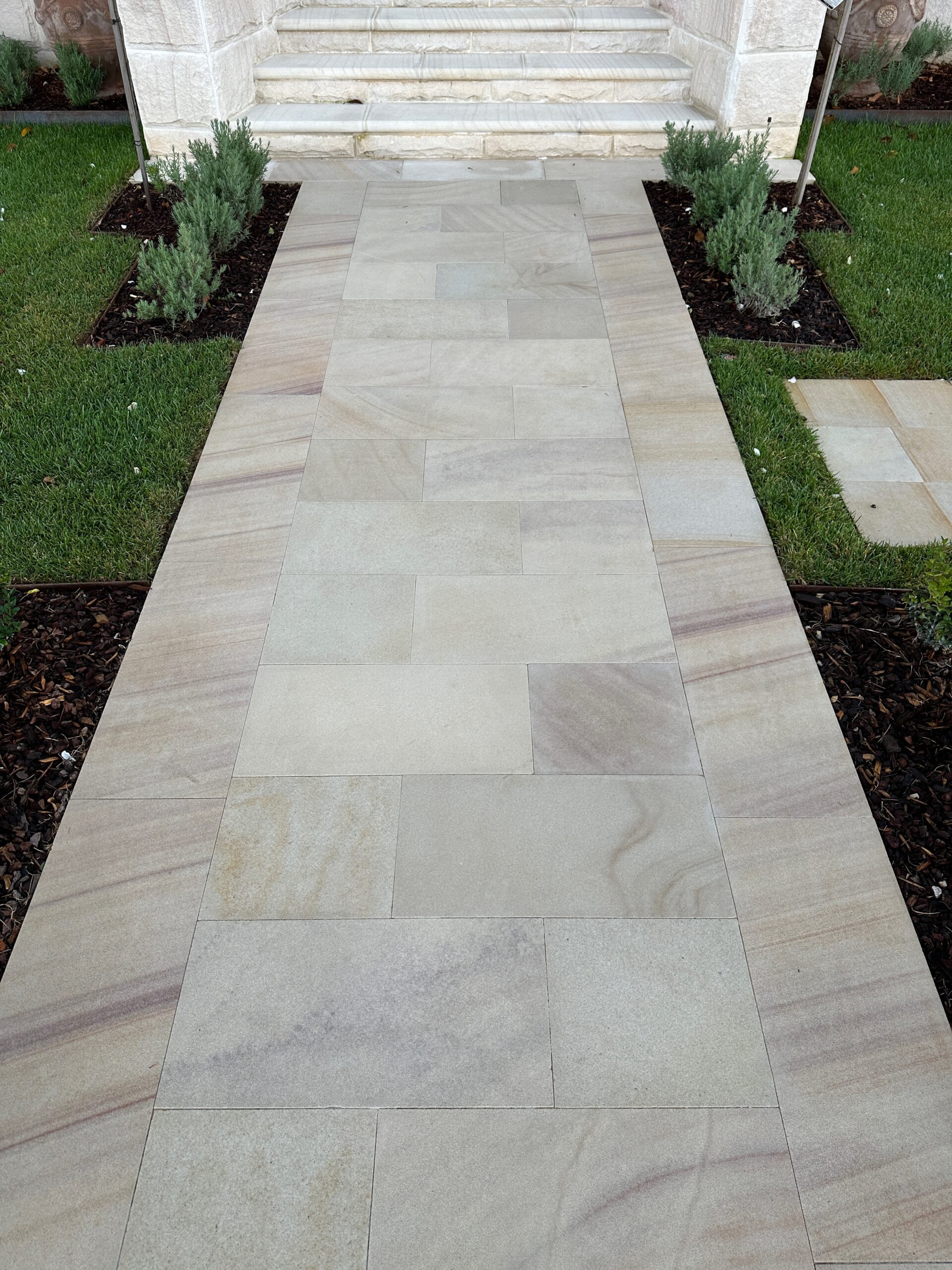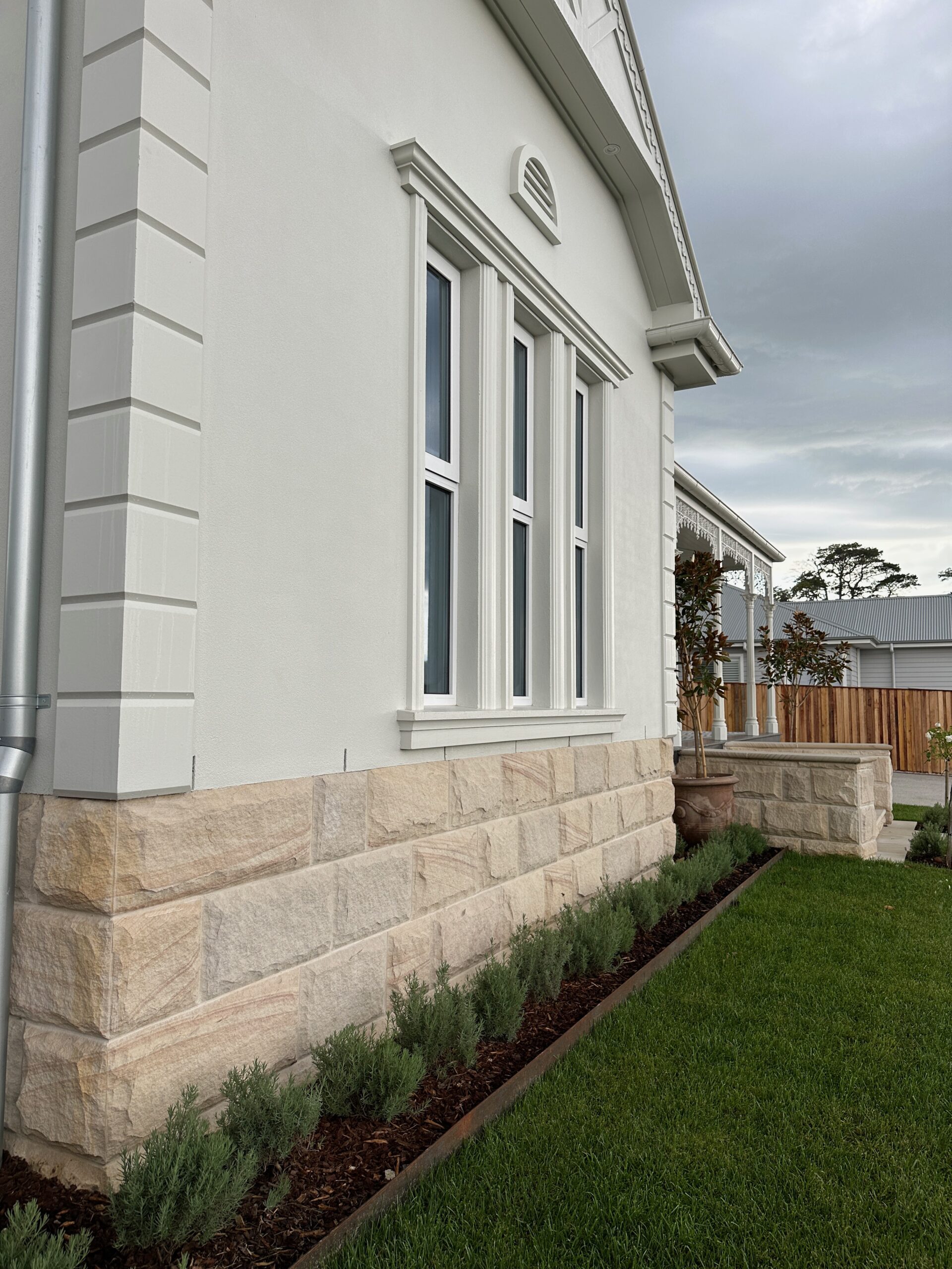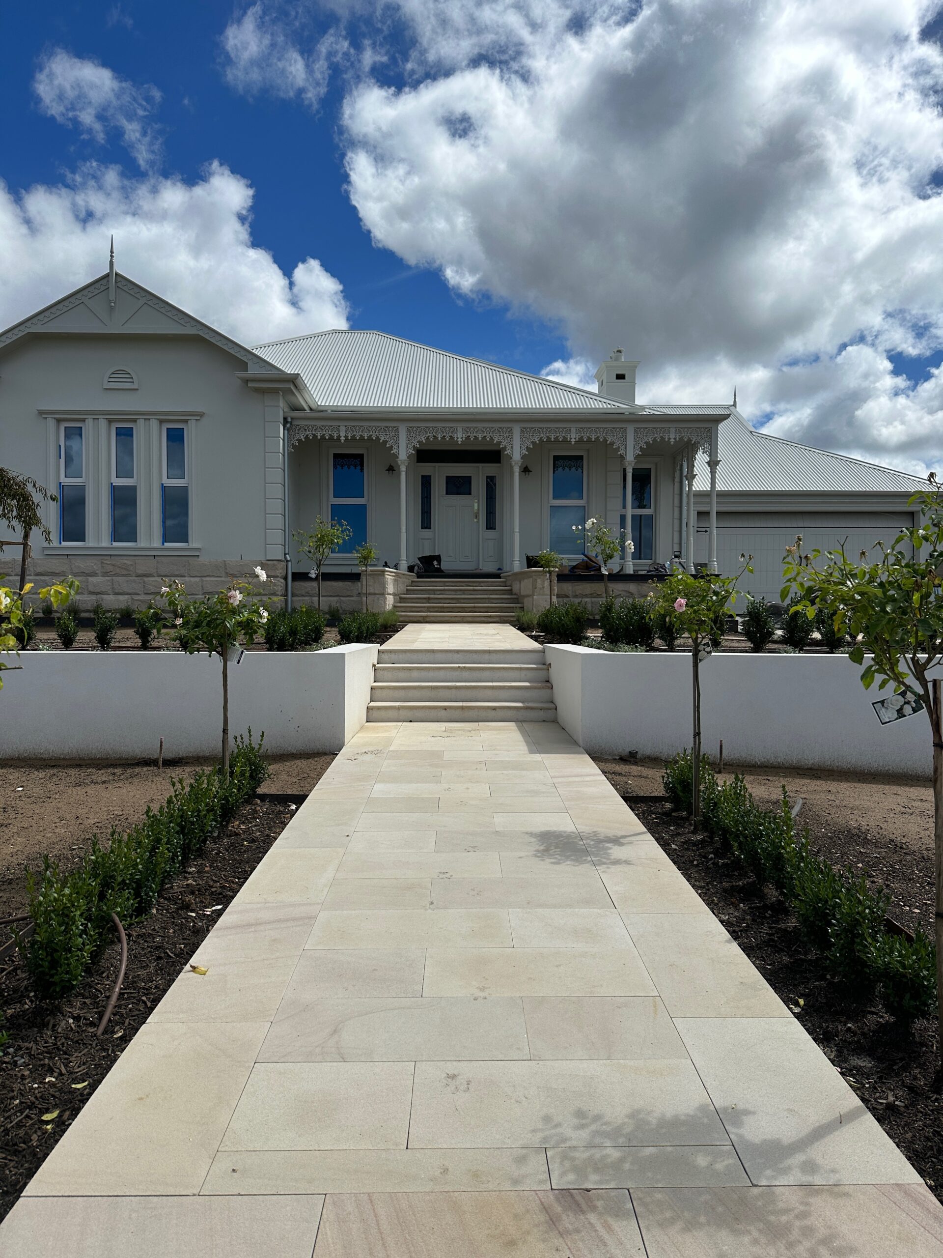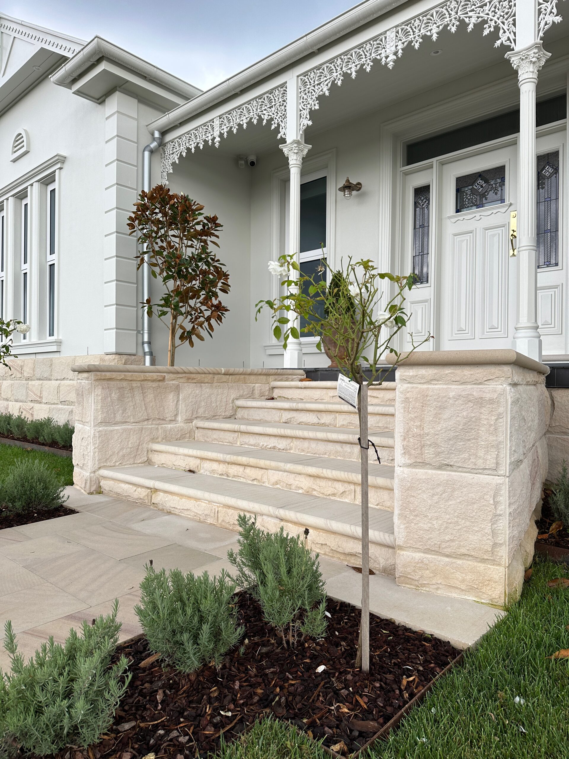 This project was completed in 2023 for Waratah Building. The use of sandstone flagging with bullnose stairs was essential if we wanted to tie in with the heritage style of the home. The originality of the ashlar style sandstone on the house really sets the foundation for the quality of the rest of “Paloma”.