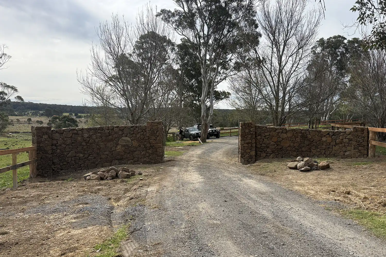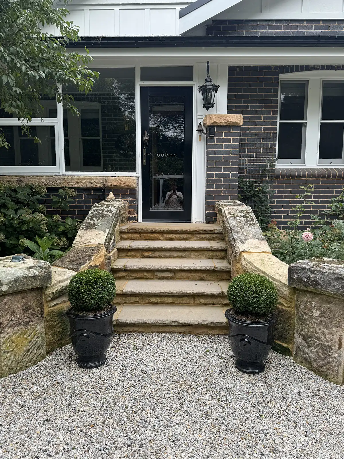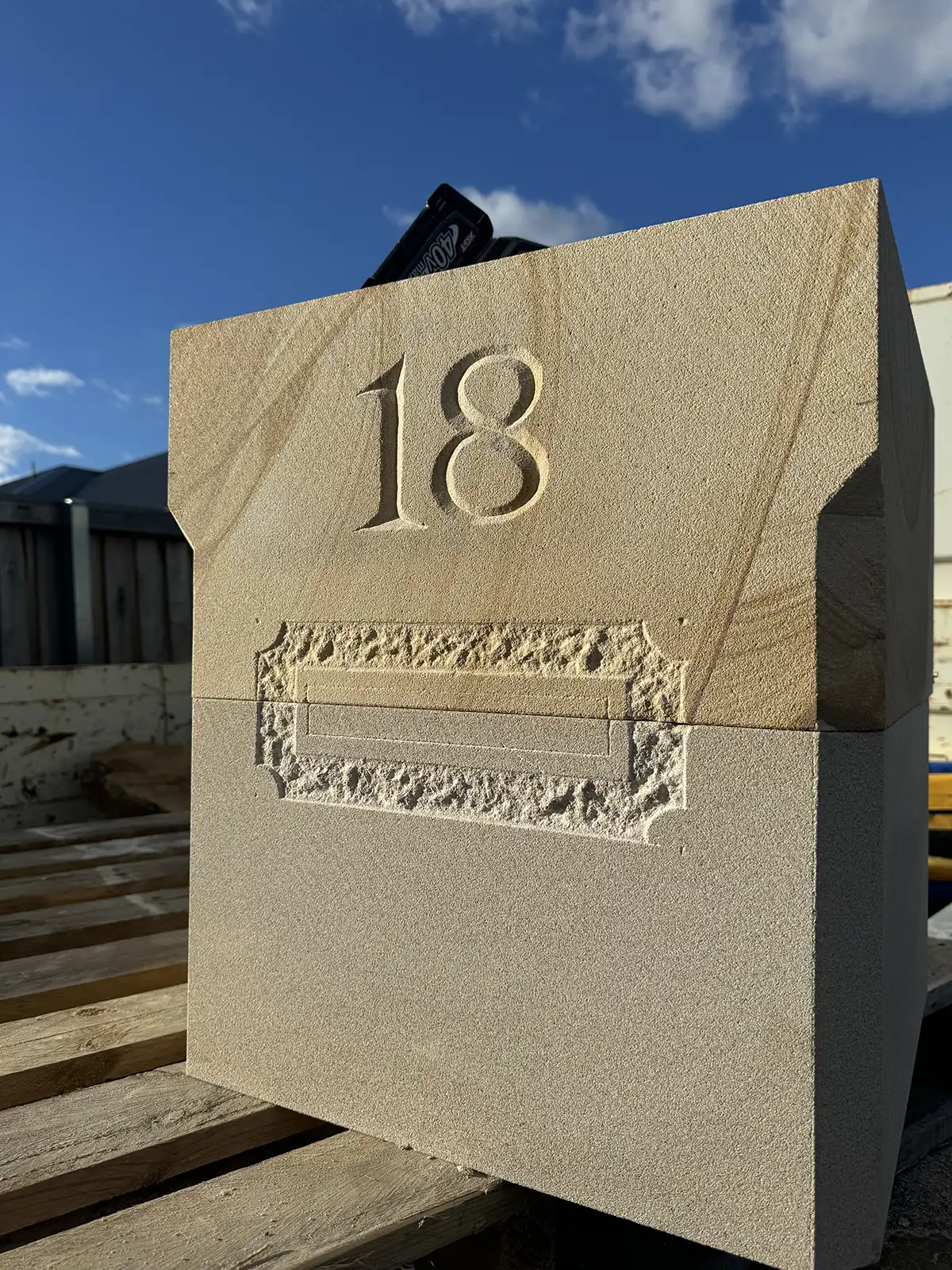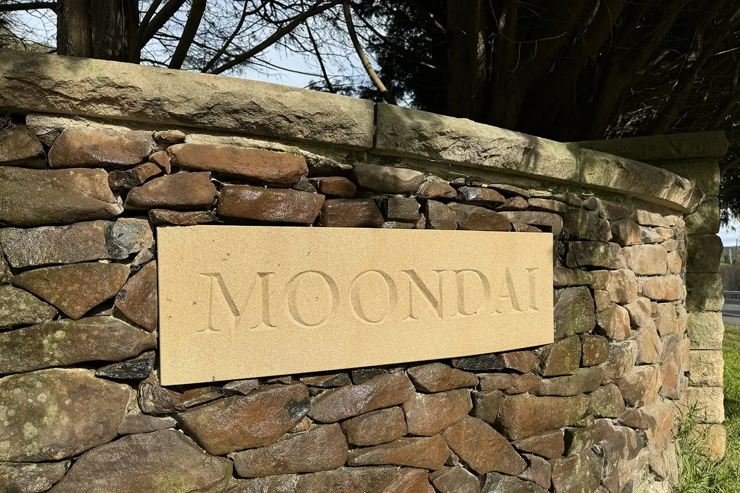 We design and construct custom stone entrances complete with sandstone walls, front fences, piers, letterboxes and personalised name plaques featuring hand-carved lettering.